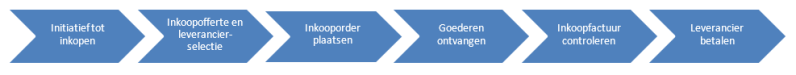 Inkoopfactuur controleren -> Bij deze stap worden de documenten met elkaar vergeleken. Komt de inkoopofferte overeen met de pakbon en inkoopfactuur? Zo ja dan wordt er een seintje doorgestuurd in het systeem om over te gaan tot betaling.